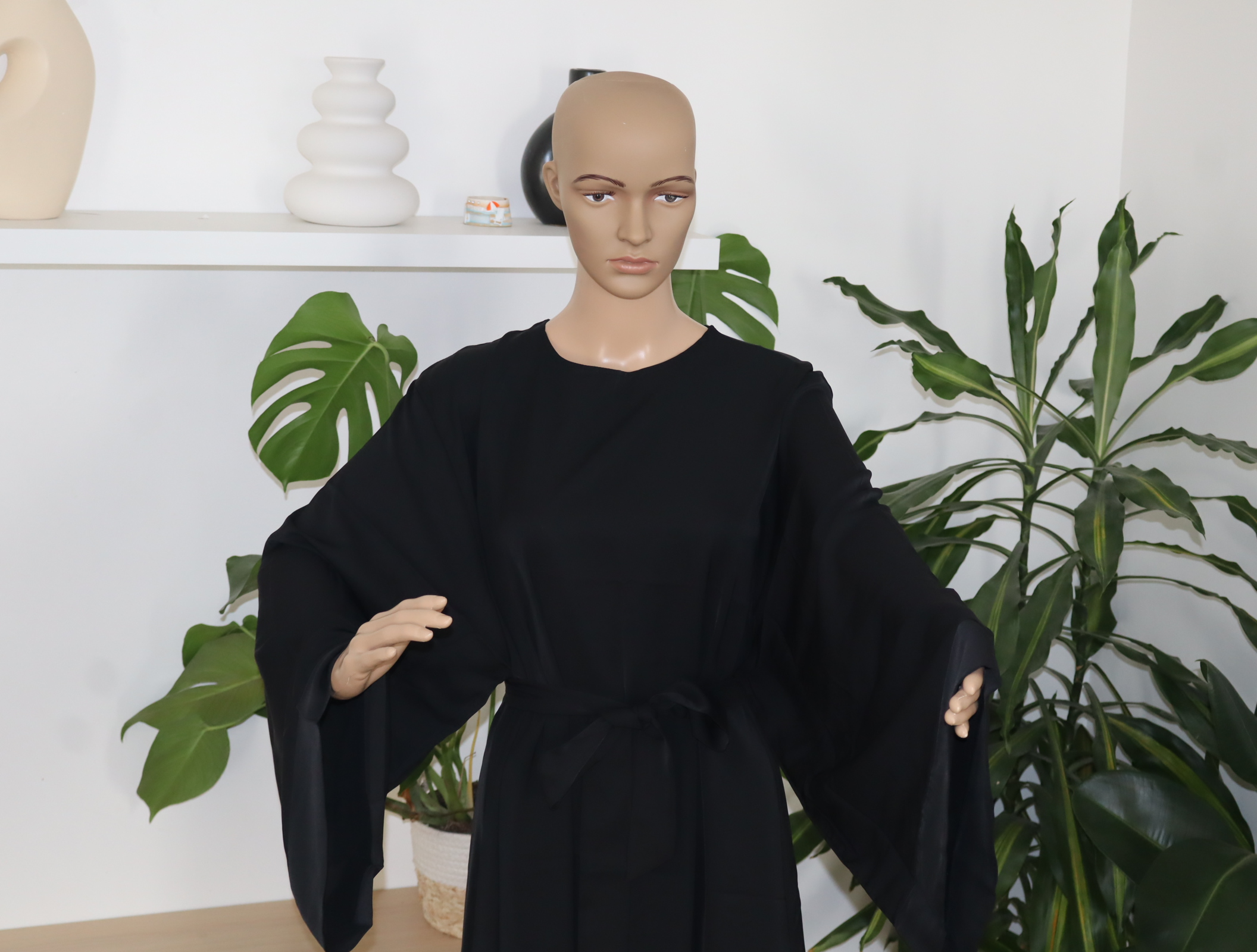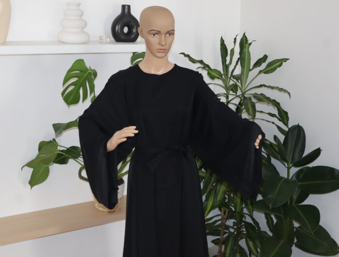 L’Abaya Belt est une abaya moderne et raffinée, conçue pour allier élégance traditionnelle et touche contemporaine. Elle se distingue par sa ceinture assortie qui marque délicatement la taille, offrant une silhouette fluide mais structurée.